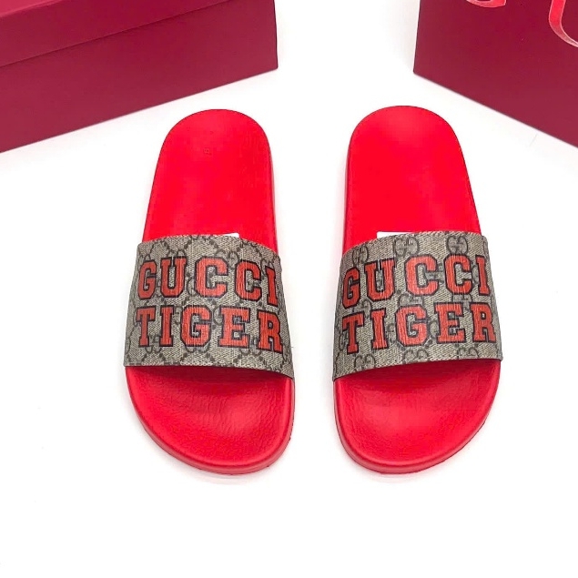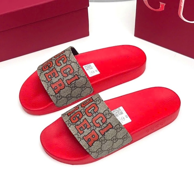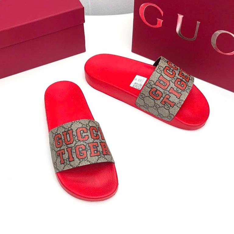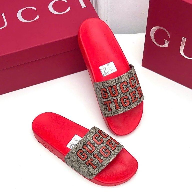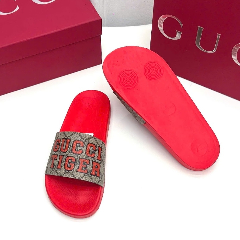 Dép lê GC đỏ nam nữ, dép quai ngang GC thiết kế sang trọng đế cao su non cực chất