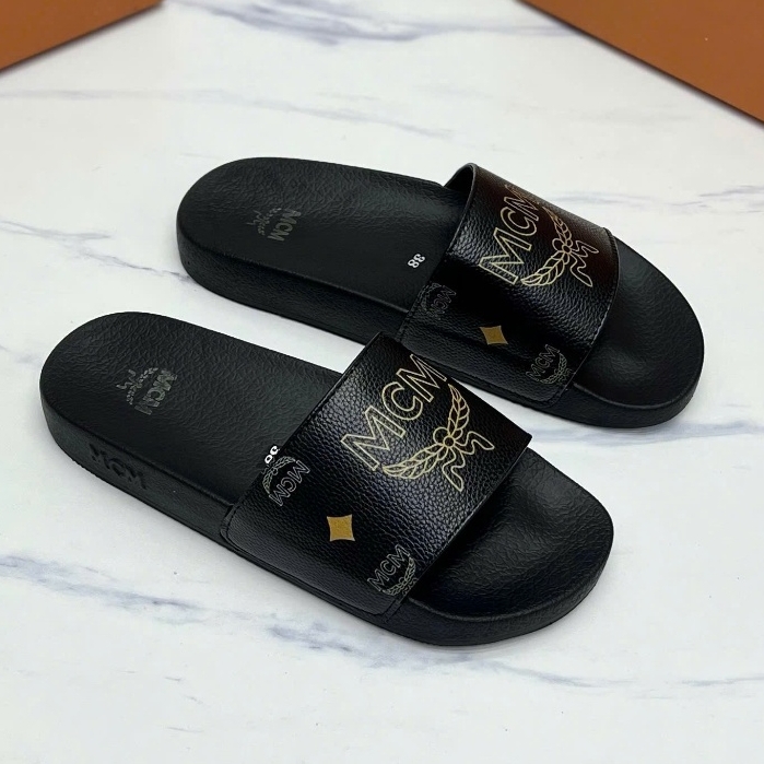 Dép M.C.M nam nữ thời trang mẫu mới 2024, quai da gắn khuy thiết kế sang trọng ( ảnh thật kèm video sz 36-43 )