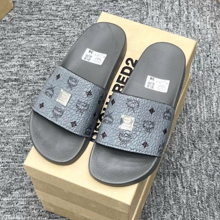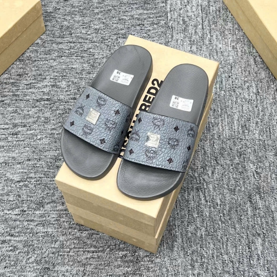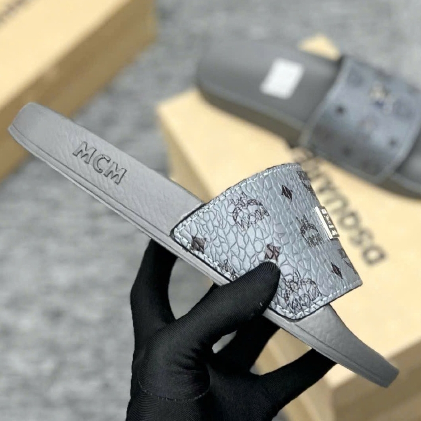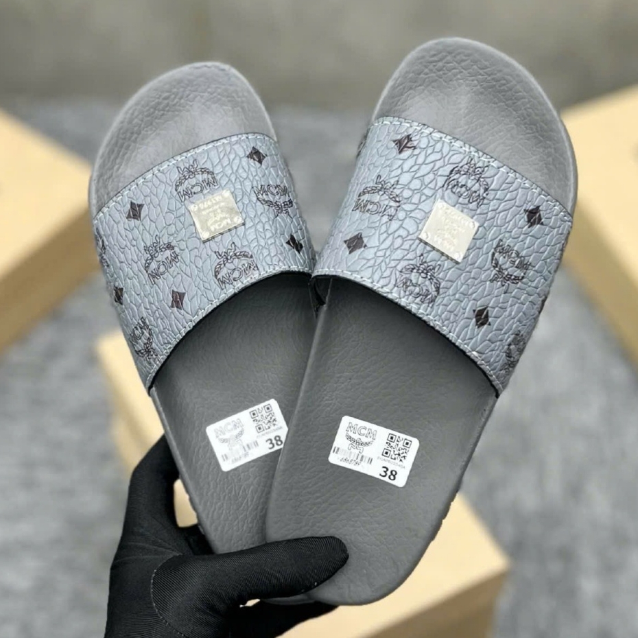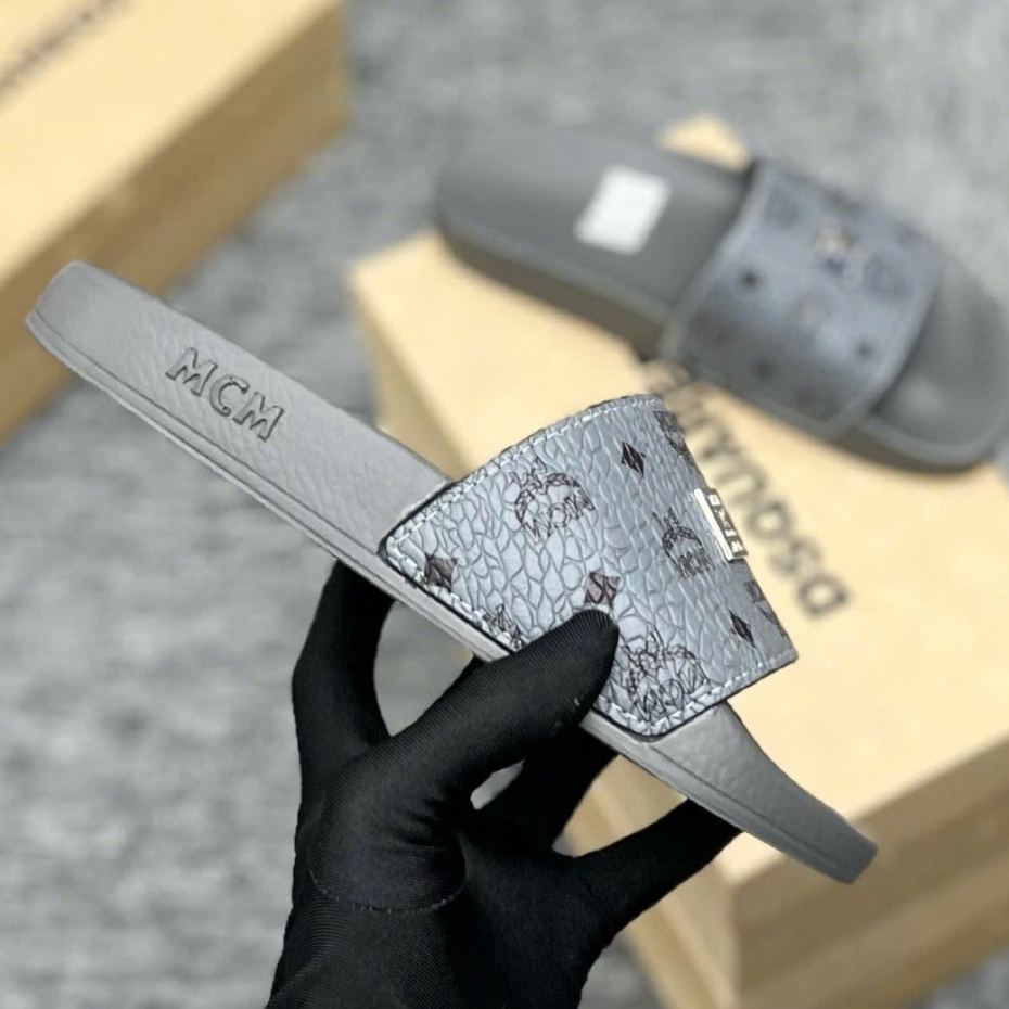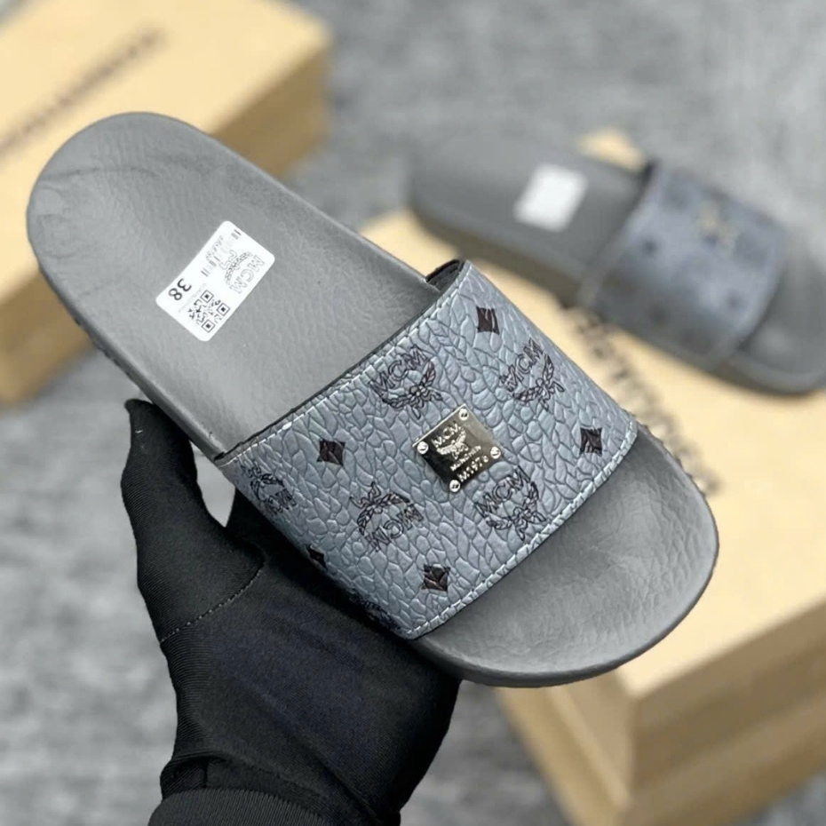 Dép MC.m Xám Hoạ Tiết Tag Logo Vuông hàng QC loại 1,Dép Mc.M cao cấp - ( VIDEO + ẢNH THẬT 100% )