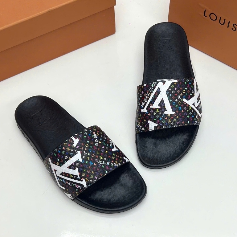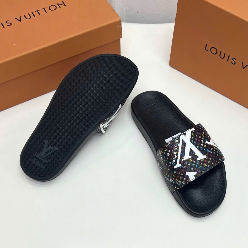 Dép Nam Luxury 2025 – Quai Ngang Khâu Chỉ, Họa Tiết Caro Thời Trang
