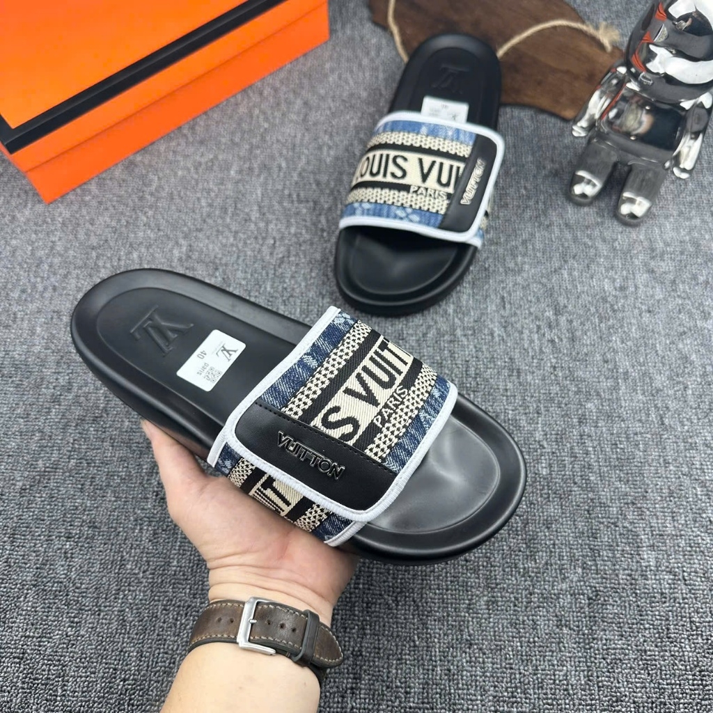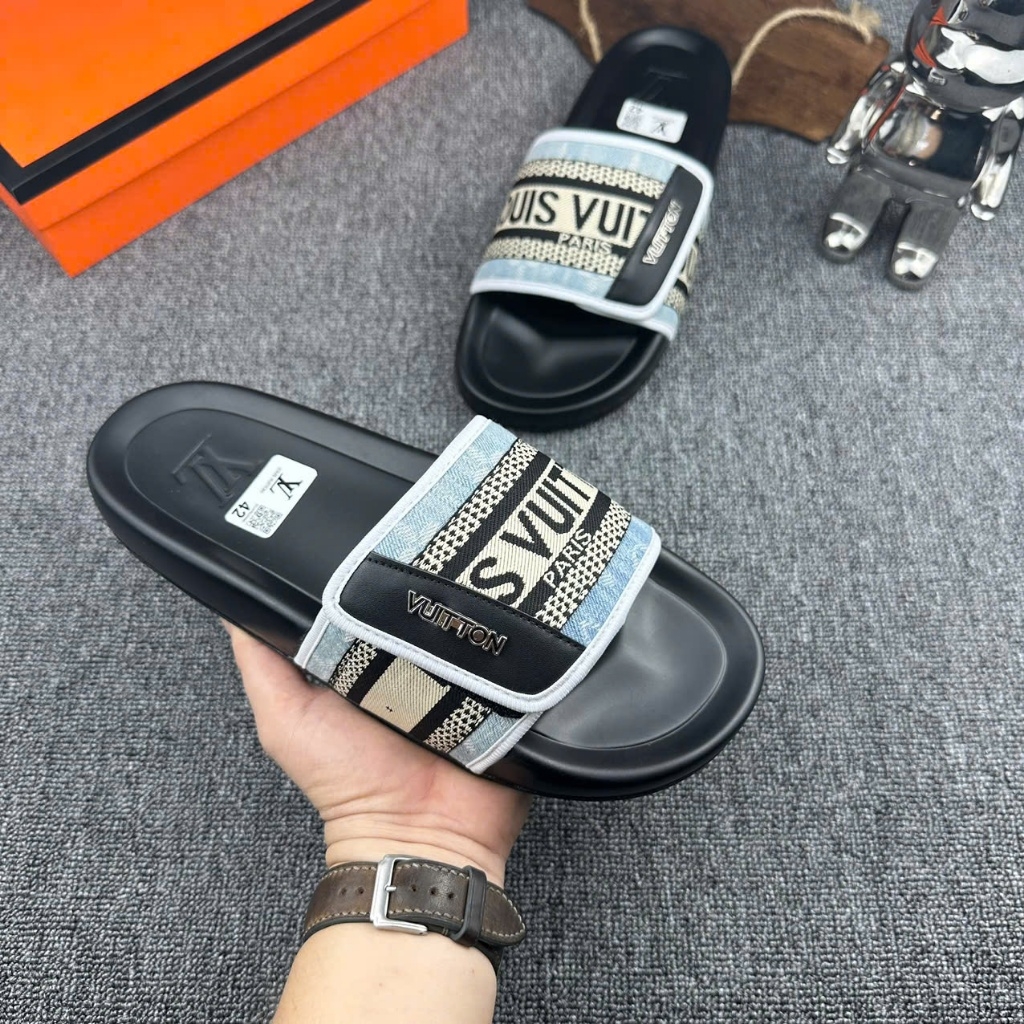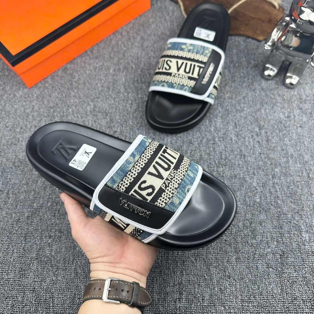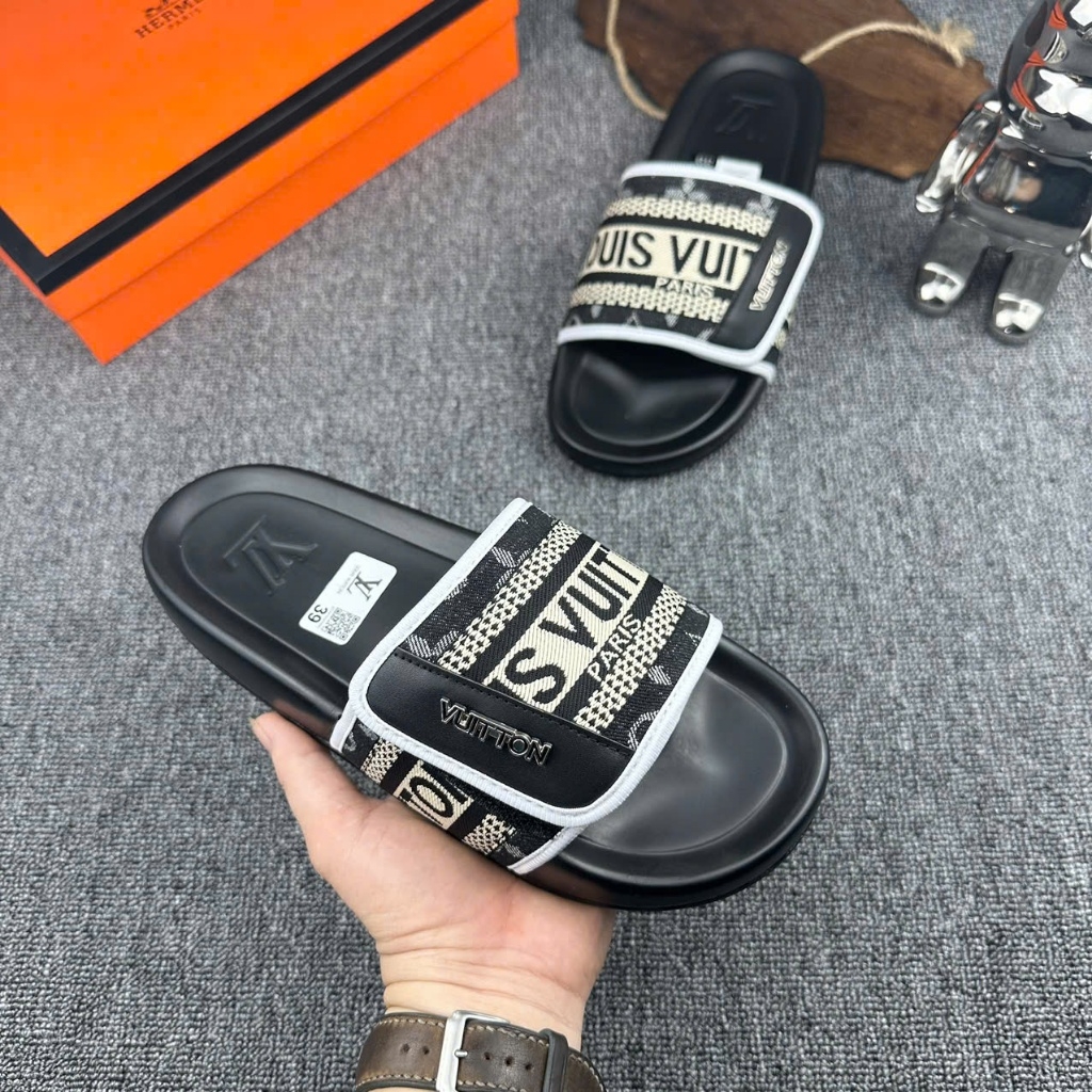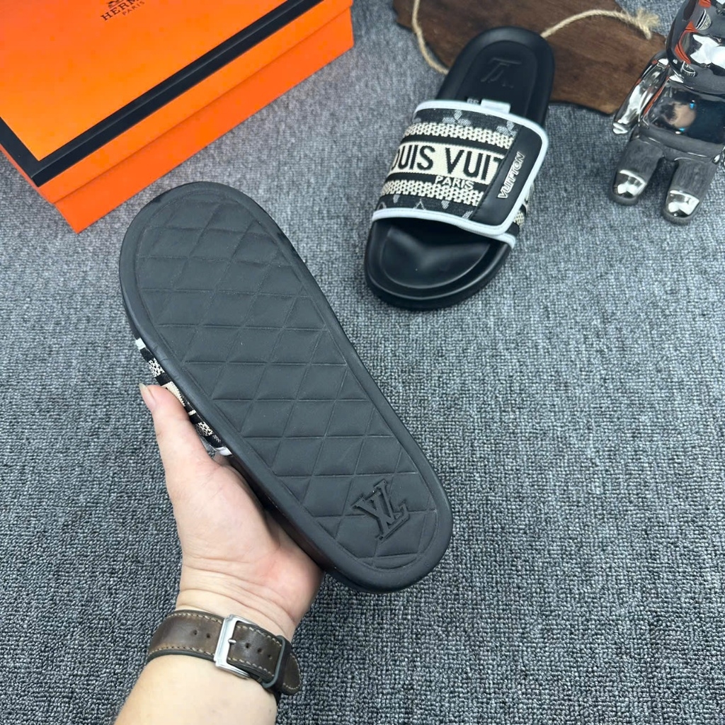 Dép Quai dán Ngang án Nam thời thượng full box - Dép đế độn Phối Chữ Quai cao su đặc Cực Chiến - Dép Lê Cao Cấp Siêu Hót