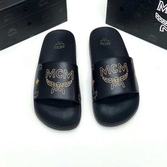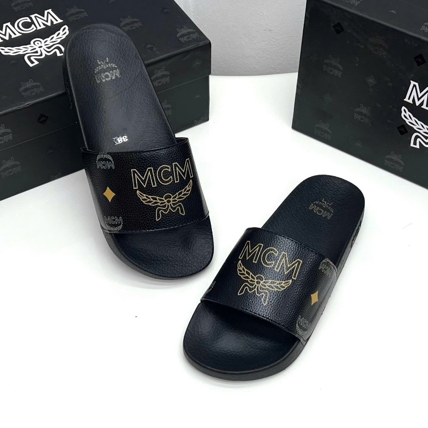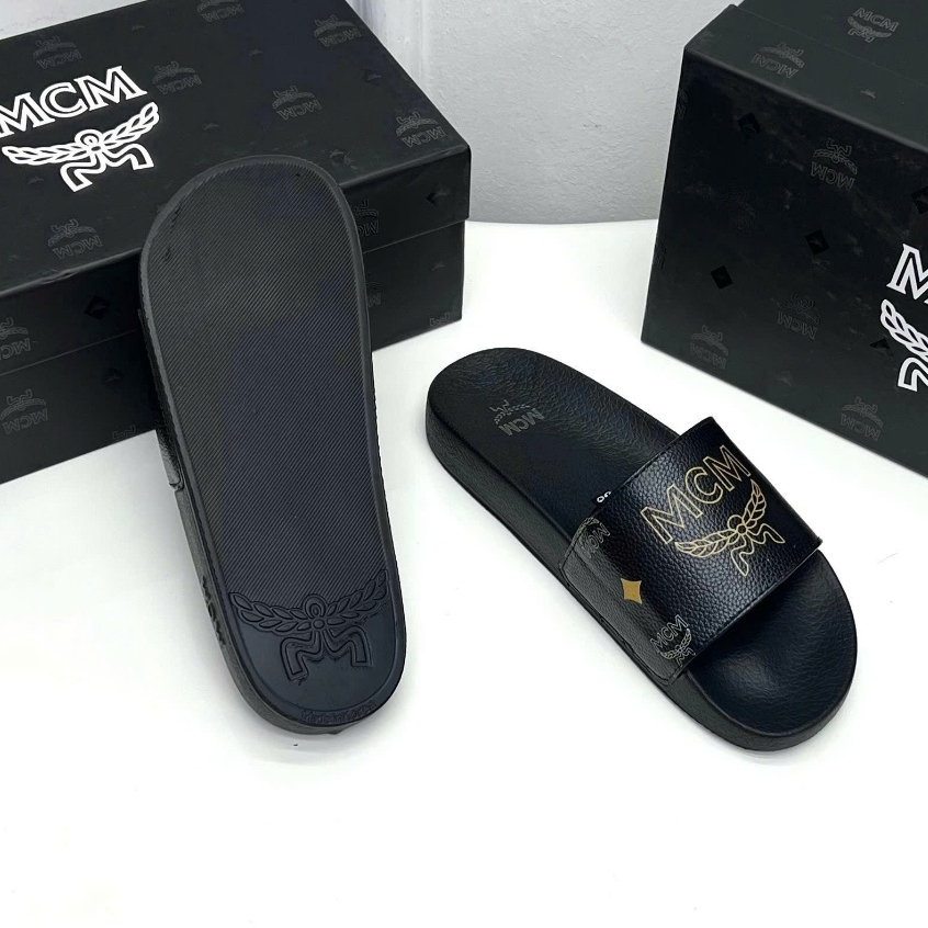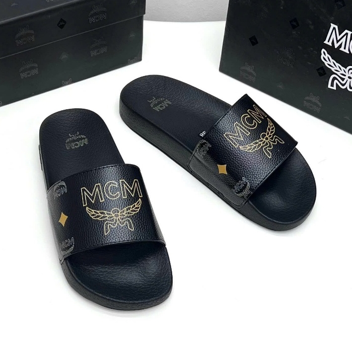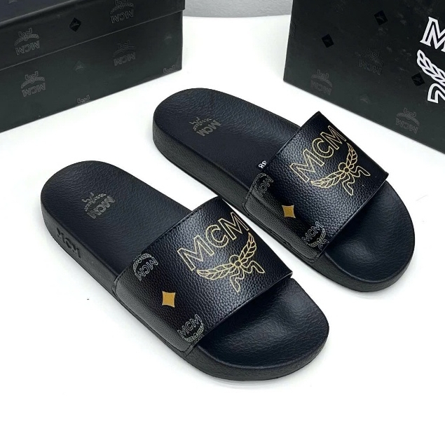 Dép quai ngang nam nữ MCM chấm bi xanh tag gương QC loại 1,Dép MCM Wmms Slides MCM xanh chấm bi tag gương.