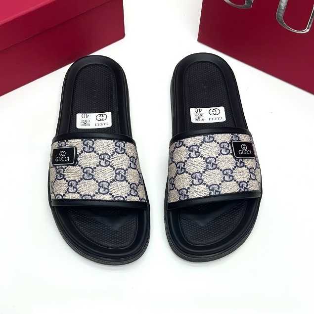 SLIDES GC VÂN GG NÂU, Dép lê quai ngang đục họa tiết monogram logo to LA on web fullbox bill thẻ phụ kiện
